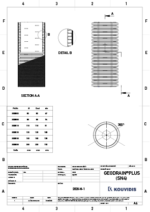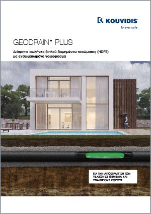 GEODRAIN PLUS é uma nova geração de tubos rígidas de 4 camadas para drenagem, fabricada em barras de 6 m, com rigidez circunferencial SN4 e SN8. Tem duas paredes com uma estrutura conjunta e é simetricamente perfurada a 2200. A primeira camada é formada por uma superfície interna lisa que facilita a passagem fluida da água, enquanto a segunda camada consiste num exterior ondulado que proporciona flexibilidade e resistência mecânica. A 3.ª camada é constituída por 4 faixas azuis longitudinais para identificação da água através da cor. GEODRAIN PLUS apresenta-se com geotêxtil não tecido (150gr/m²) agulhado pré-instalado, que forma a sua 4.ª camada.