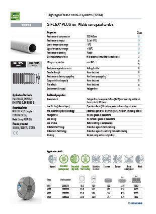 O nova tubo maleável de 2 camadas SIFLEX PLUS, com tecnologia antieletromagnética, revoluciona as instalações embutidas em gesso cartonado. A parede externa ondulada da tubo oferece a flexibilidade e a resistência mecânica necessárias, através da utilização de uma menor quantidade de matérias-primas. A parede interna acompanha a geometria da camada exterior, facilitando a introdução dos cabos.