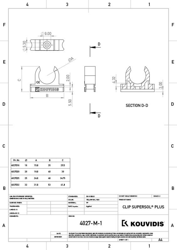 É feito de um composto de PO blend termoplástica estabilizada de forma especial, em preto RAL 9004 e tem uma proteção melhorada para a radiação ultravioleta. Os abraçadeiras DUROSOL PLUS são compatíveis com as ferramentas de fixação de parafusos, o que proporciona facilidade e segurança à instalação elétrica.