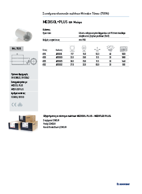 O acoplador de ligação MEDISOL PLUS foi concebido de forma a ser ligado com segurança às tubos de 2 camadas MEDISOL PLUS, MEDIFLEX PLUS, SILCOR PLUS e SIFLEX PLUS   da KOUVIDIS, proporcionando, no mínimo, uma proteção de entrada IP65. É produzido a partir de PO blend termoplástico especialmente estabilizado e é fornecido na cor amarela RAL 7035.