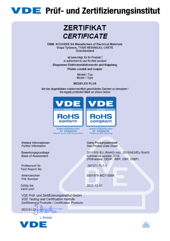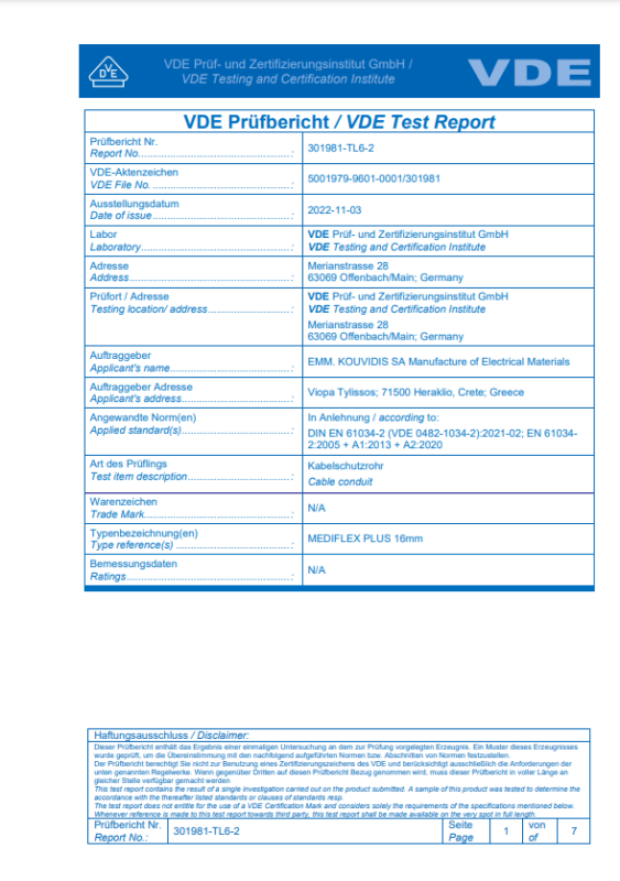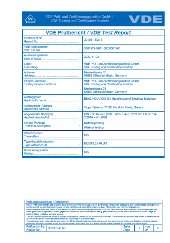 - ESTANDE DE CANDIDATURA:EN 61386.22, ΕΝ 50642, ΕΝ 60754-2, ΕΝ 61034-2